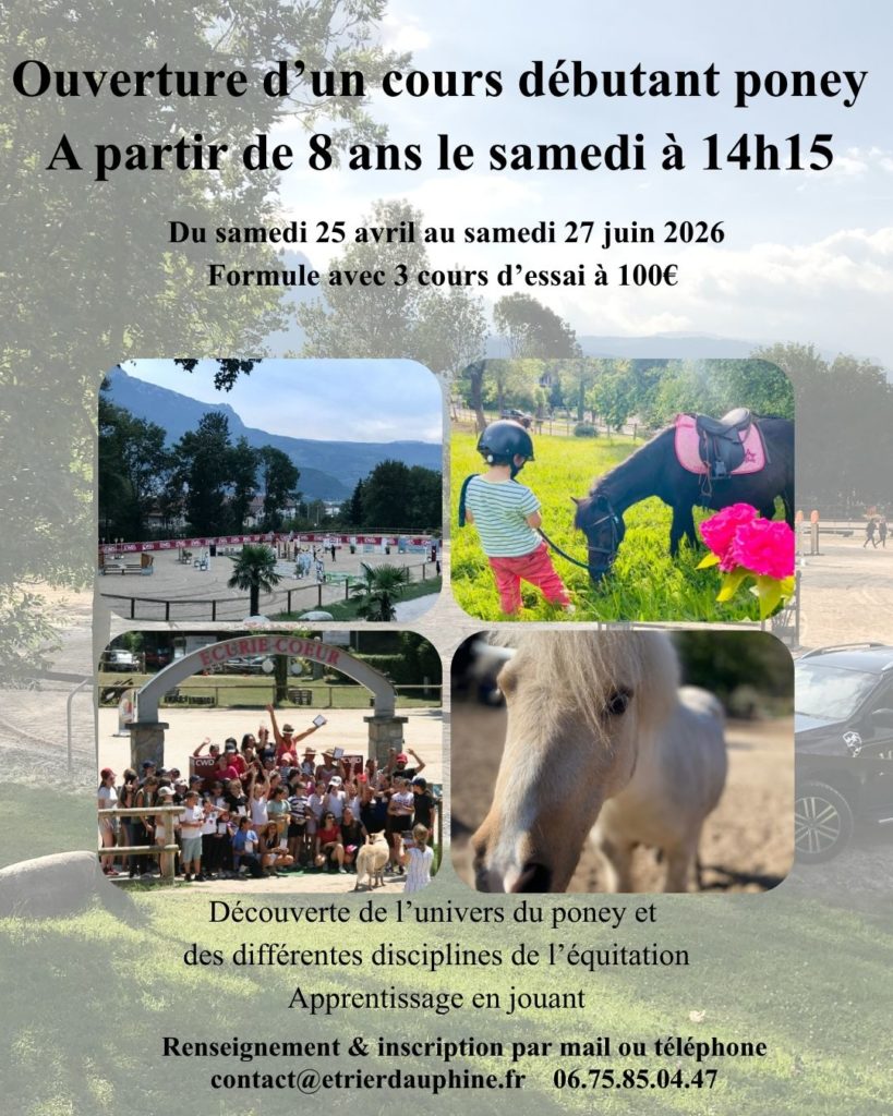 Ouverture d’un cours poney débutant pour les enfants à partir de 8 ans