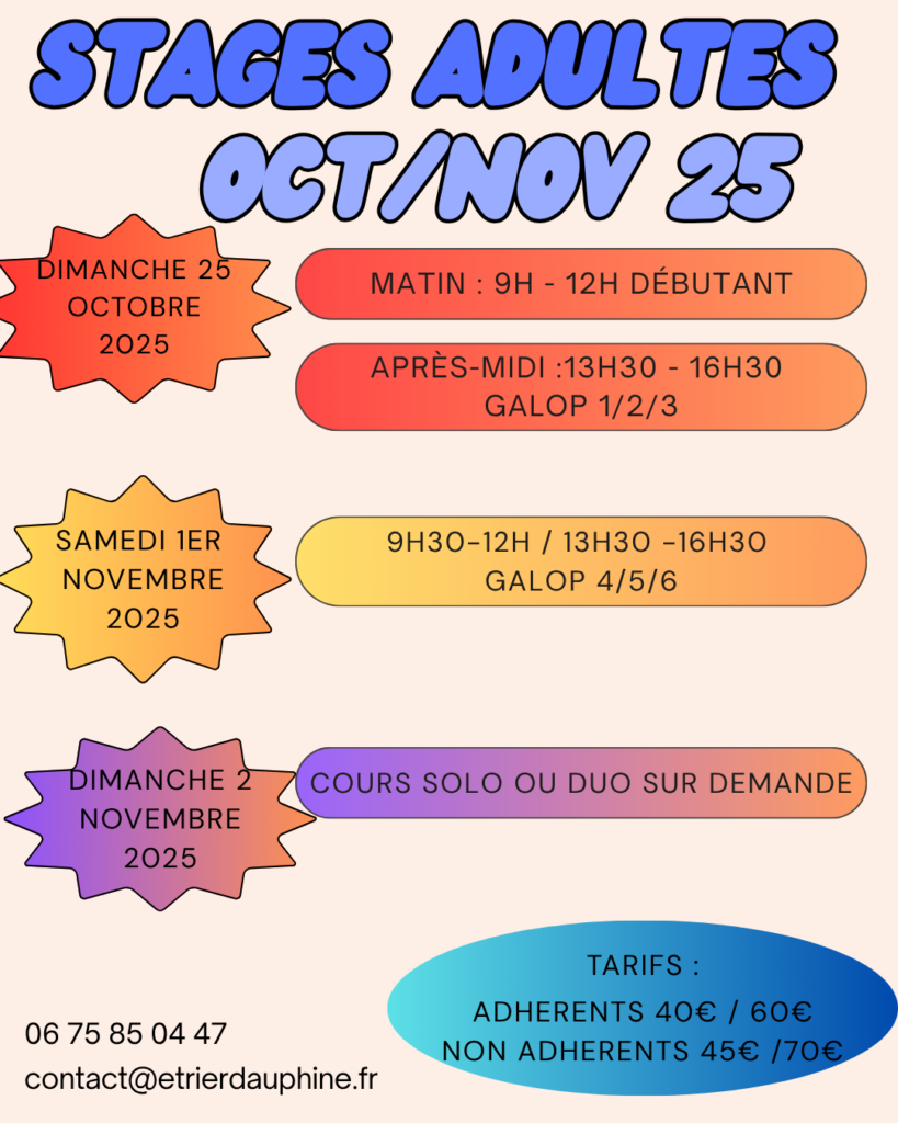 Renseignements par mail à contact@etrierdauphine.fr et par téléphone au 06.75.85.04.47